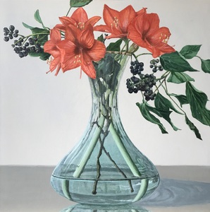 2021glazen vaas met amaryllissen en klimop.